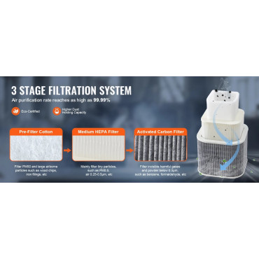 Utiliza un filtro de múltiples capas, incluye un filtro de carbón activado Pre + HEPA +